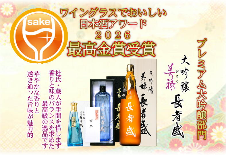 「美禄 長者盛 大吟醸」 がプレミアム大吟醸部門≪最高金賞≫を受賞いたしました。